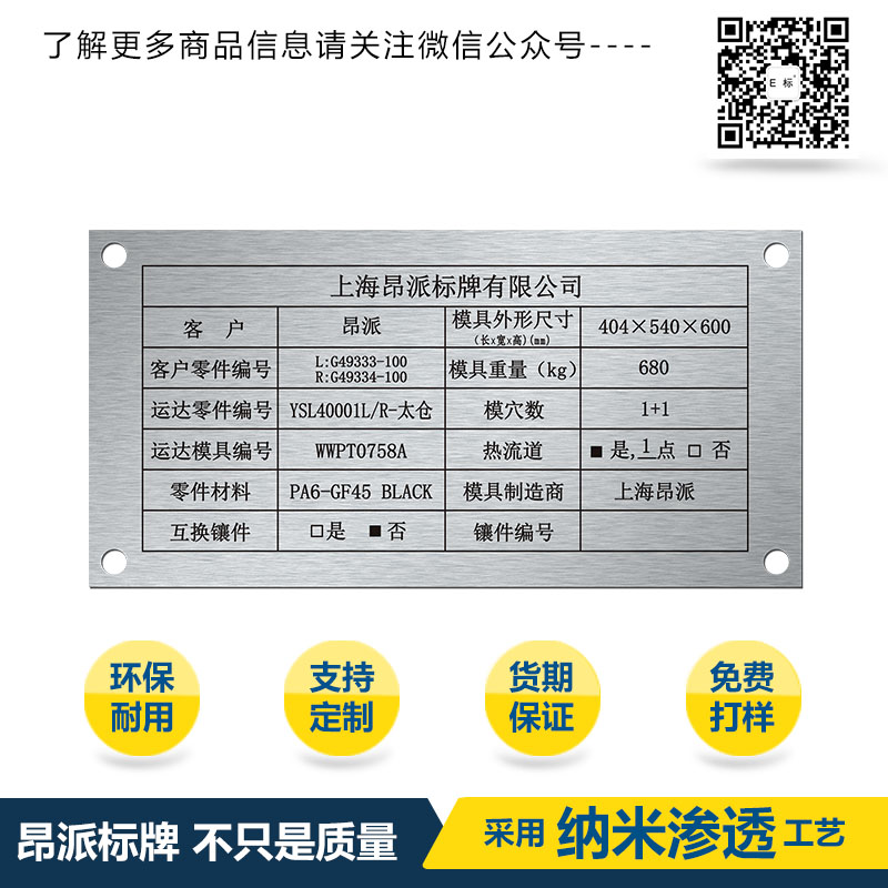 領(lǐng)先的供應(yīng)商之一。上海昂派標牌生產(chǎn)的銘牌工藝是采用特種印刷,處理工序復雜,難于防造,能承